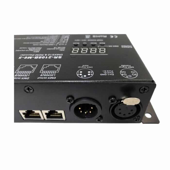 The SIRS-E 6-Channel DMX RDM Decoder is a versatile and reliable solution for professional LED lighting control. Designed to work with RGB, RGBW, and RGBWW LED strips or modules, this decoder supports both DMX512 and RDM protocols, offering smooth dimming, flexible configuration, and high power capacity up to 864W.